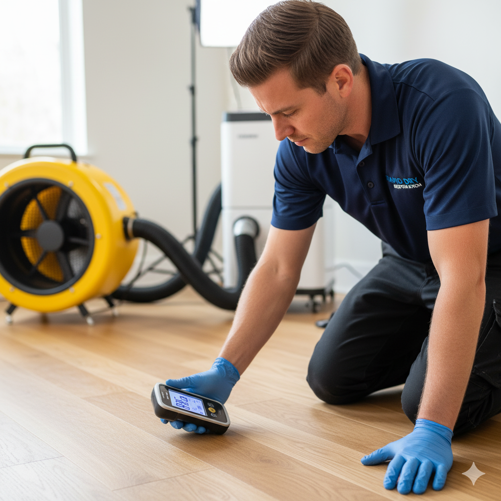 - Professional Drying: Deploying high-powered air movers and dehumidifiers to remove all moisture from the wood and subfloor.
